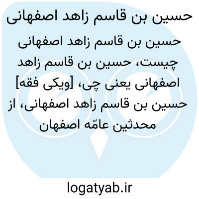 [ویکی فقه] حسین بن قاسم زاهد اصفهانی، از محدثین عامّه اصفهان در قرن سوم هجری بوده است. حسین بن قاسم اصفهانی زاهد، از محدثین عامّه در قرن سوم هجری. ذهبی درباره او گوید: «فیه لین». زاهد قبل از سال ۲۴۰ق فوت شده است. شمس الدین ذهبی، محمد بن احمد، میزان الاعتدال، ج۱، ص۶۲. ۱. ↑ شمس الدین ذهبی، محمد بن احمد، میزان الاعتدال، ج۱، ص۶۲. مهدوی، سیدمصلح الدین، اعلام اصفهان، ج۲، ص۷۳۶. ...