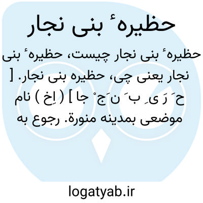حظیره بنی نجار. [ ح َ رَ ی ِ ب َ ن َج ْ جا ] ( اِخ ) نام موضعی بمدینه منورة. رجوع به جزء1 از ج 2 حبیب السیر چ طهران ص 206 شود.