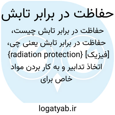{radiation protection} [فیزیک] اتخاذ تدابیر و به کار بردن مواد خاص برای محافظت عموم مردم و کارکنان محیط های آزمایشگاهی یا صنعتی در برابر تابش های زیان بار