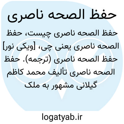 [ویکی نور] حفظ الصحه ناصری (ترجمه). حفظ الصحه ناصری تألیف محمد کاظم گیلانی مشهور به ملک الاطباء، که با تصحیح و تحقیق دکتر رسول چوپانی منتشر شده است. این اثر به امر ناصر الدین شاه قاجار به رشته تحریر درآمده است..