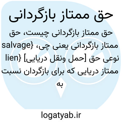{salvage lien} [حمل ونقل دریایی] نوعی حق ممتاز دریایی که برای بازگردان نسبت به کشتی یا کالاهای آن در روند بازگردانی تا زمان وصول مطالبات محفوظ است