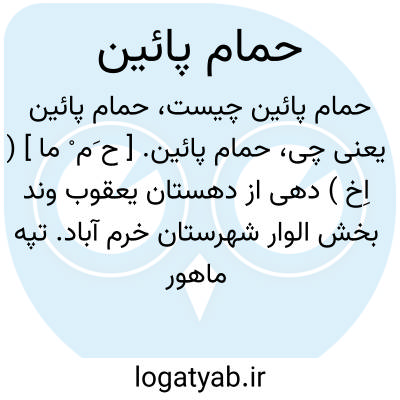 حمام پائین. [ ح َم ْ ما ] ( اِخ ) دهی از دهستان یعقوب وند بخش الوار شهرستان خرم آباد. تپه ماهور و گرم سیری است. آب آن از چشمه حمام پائین و محصول آن غلات و لبنیات و شغل اهالی زراعت و گله داری و صنایع دستی زنان فرش و جاجیم بافی است. راه مالرو دارد. ساکنین از طایفه پاپی بوده و برای تعلیف احشام در حوالی ییلاق میروند. ( از فرهنگ جغرافیائی ایران ج 6 ).