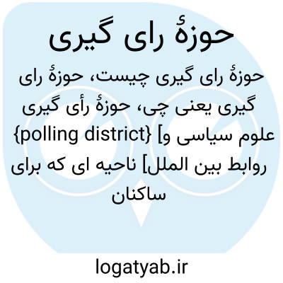 {polling district} [علوم سیاسی و روابط بین الملل] ناحیه ای که برای ساکنان رأی دهندۀ آن یک شعبۀ رأی گیری در نظر گرفته شده است