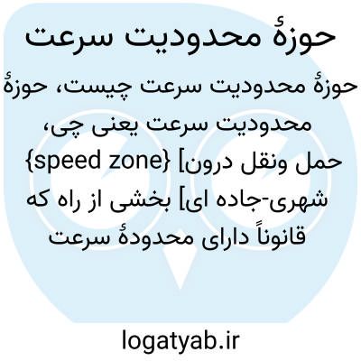 {speed zone} [حمل ونقل درون شهری-جاده ای] بخشی از راه که قانوناً دارای محدودۀ سرعت است و سرعت در این محدوده ممکن است با سرعت مصوب قانونی تفاوت داشته باشد