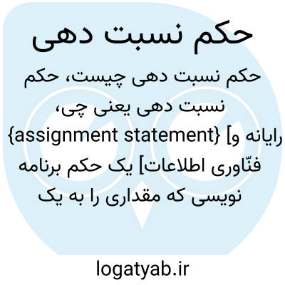 {assignment statement} [رایانه و فنّاوری اطلاعات] یک حکم برنامه نویسی که مقداری را به یک متغیر نسبت می دهد