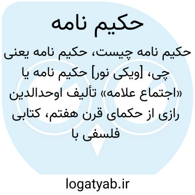 [ویکی نور] حکیم نامه یا «اجتماع علامه» تألیف اوحدالدین رازی از حکمای قرن هفتم، کتابی فلسفی با مایه‎های عرفانی است که به نثر و نظم فارسی تألیف شده است. به این اثر دو مثنوی از نویسنده با نام «ذیل سیر العباد» و «تبدل صورت ها» و سه رباعی ضمیمه شده است. تصحیح و تحقیق اثر توسط نصرالله پورجوادی انجام گرفته است.