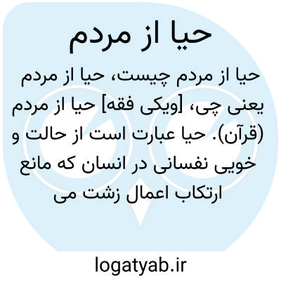 [ویکی فقه] حیا از مردم (قرآن). حیا عبارت است از حالت و خویی نفسانی در انسان که مانع ارتکاب اعمال زشت می شود. عده ای از مردم به رغم بی حیایی در مقابل خدا، از مردم حیا و شرم می کنند.