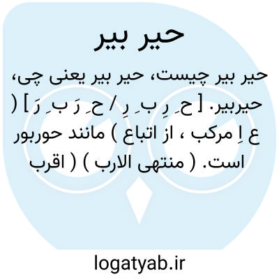 حیربیر. [ ح ِ رِ ب ِ رِ / ح ِ رَ ب ِ رَ ] ( ع اِ مرکب، از اتباع ) مانند حوربور است. ( منتهی الارب ) ( اقرب الموارد ). رجوع به حوربور شود.