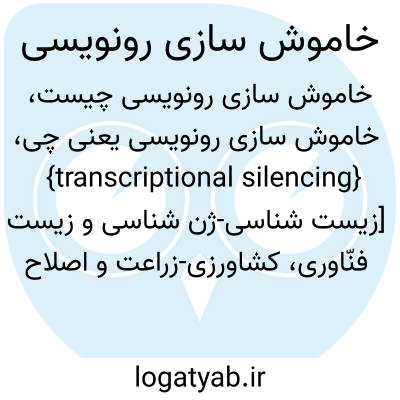 {transcriptional silencing} [زیست شناسی-ژن شناسی و زیست فنّاوری، کشاورزی-زراعت و اصلاح نباتات] متراکم شدن بیش ازحد دامنه ای از کروماتین که از فعالیت ژن جلوگیری می کند و در این حالت وجود عوامل رونویسی فعال در یاخته تأثیری در رونویسی ندارد