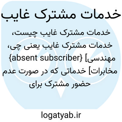 {absent subscriber} [مهندسی مخابرات] خدماتی که در صورت عدم حضور مشترک برای پاسخ گویی به تماس، همۀ تماس های ورودی را با اعلام غیبت یا پاسخی ضبط شده پاسخ می دهد