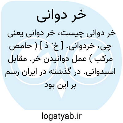 خردوانی. [ خ َ دَ ] ( حامص مرکب ) عمل دوانیدن خر. مقابل اسبدوانی. در گذشته در ایران رسم بر این بود که پس از اسب دوانی دور میدان خر میدوانیدند و به این ترتیب مسابقه ای چون اسب دوانی انجام می دادند.