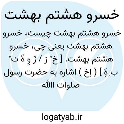 خسرو هشتم بهشت. [ خ ُ رَ / رُ وِ هََ ت ُ ب ِهَِ ] ( اِخ ) اشاره به حضرت رسول صلوات اﷲ علیه و آله است. ( برهان قاطع ) ( انجمن آرای ناصری ) ( آنندراج ).