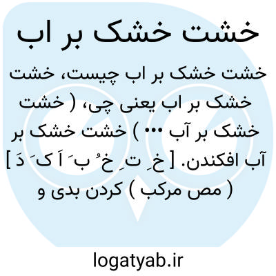 ( خشت خشک بر آب ••• ) خشت خشک بر آب افکندن. [ خ ِ ت ِ خ ُ ب َ اَ ک َ دَ ] ( مص مرکب ) کردن بدی و کاری که اصلاح آن میسر نباشد. ( یادداشت بخط مؤلف ):