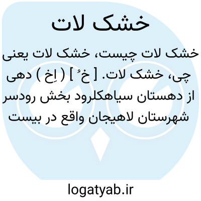 خشک لات. [ خ ُ ] ( اِخ ) دهی از دهستان سیاهکلرود بخش رودسر شهرستان لاهیجان واقع در بیست هزارگزی جنوب خاوری رودسر و یک هزارگزی راه شوسه رودسر به شهسوار. این ده در جلگه قرار دارد با آب و هوای معتدل و مرطوب. آب آن از نهر سیاهکل رود و محصول آن برنج و شغل اهالی زراعت است.( از فرهنگ جغرافیائی ایران ج 2 ). رجوع به مازندران و استرآباد رابینو بخش انگلیسی ص 6 و 18 و 29 شود.
