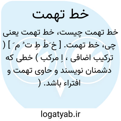 خط تهمت. [ خ َطْ طِ ت ُ م َ ] ( ترکیب اضافی، اِ مرکب ) خطی که دشمنان نویسند و حاوی تهمت و افتراء باشد. ( یادداشت بخط مؤلف ). کنایه از تهمت و افتراء: