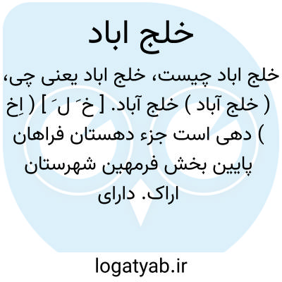 ( خلج آباد ) خلج آباد. [ خ َ ل َ ] ( اِخ ) دهی است جزء دهستان فراهان پایین بخش فرمهین شهرستان اراک. دارای 487 تن سکنه. آب آن از قنات و محصول آنجا غلات، بنشن، پنبه، انگور، صیفی و سیب زمینی. شغل اهالی زراعت، گله داری و قالیچه بافی و راهش اتومبیل رو است. ( از فرهنگ جغرافیایی ایران ج 2 ).