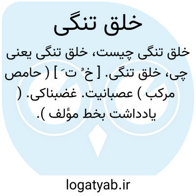 خلق تنگی. [ خ ُ ت َ ] ( حامص مرکب ) عصبانیت. غضبناکی. ( یادداشت بخط مؤلف ).