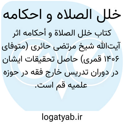 [ویکی فقه] خلل الصلاه و احکامه (کتاب). کتاب "خلل الصلاة و احکامه" تألیف آیت الله شیخ مرتضی حائری ره( م ۱۴۰۶ قمری) می باشد، این کتاب حاصل تحقیقات مؤلف در زمان تدریس درس خارج فقه در حوزه علمیه قم است و در آن حکم مواردی که صحت نماز را دچار اشکال می کند مورد بحث دقیق علمی قرار گرفته است.