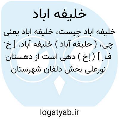 ( خلیفه آباد ) خلیفه آباد. [ خ َ ف ِ ] ( اِخ ) دهی است از دهستان نورعلی بخش دلفان شهرستان خرم آباد، دارای 420 تن سکنه. آب آن از سراب سردآویز و چشمه و محصول آنجا غلات و توتون و لبنیات و پشم. شغل اهالی زراعت و گله داری و راه مالروست. ( از فرهنگ جغرافیایی ایران ج 6 ).