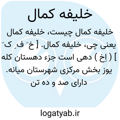 خلیفه کمال. [ خ َ ف ِ ک َ ] ( اِخ ) دهی است جزء دهستان کله یوز بخش مرکزی شهرستان میانه. دارای صد و ده تن سکنه. آب آن از چشمه و محصول آن غلات و حبوبات و بزرک و شغل اهالی زراعت و گله داری و راه مالرو است. ( از فرهنگ جغرافیایی ایران ج 4 ).