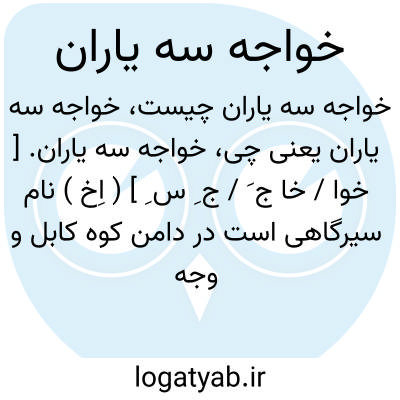 خواجه سه یاران. [ خوا / خا ج َ / ج ِ س ِ ] ( اِخ ) نام سیرگاهی است در دامن کوه کابل و وجه تسمیه اش آن است که خواجه مودود چشتی و خواجه خان سعید خلیفه خواجه مودود و خواجه محمد ریگ روان خلیفه و خواجه خان سعید در آن موضع با هم صحبت داشته اند. ( برهان قاطع ) ( از ناظم الاطباء ) ( از آنندراج ).