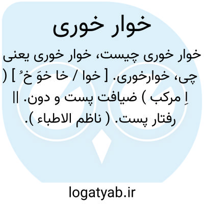 خوارخوری. [ خوا / خا خوَ خ ُ ] ( اِ مرکب ) ضیافت پست و دون. || رفتار پست. ( ناظم الاطباء ).