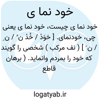 خودنمای. [ خوَدْ / خُدْ ن ُ / ن ِ / ن َ ] ( نف مرکب ) شخصی را گویند که خود را بمردم وانماید. ( برهان قاطع ). متکبر. خودستا. ( ناظم الاطباء ). متظاهر. معجب. خودنما: