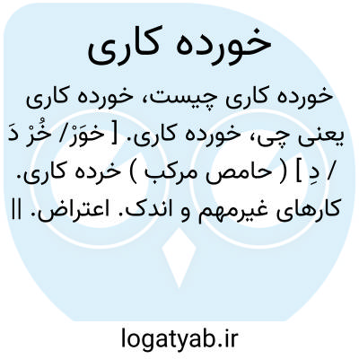 خورده کاری. [ خوَرْ/ خُرْ دَ / دِ ] ( حامص مرکب ) خرده کاری. کارهای غیرمهم و اندک. اعتراض. || ریزه کاری. || ( اِ ) کاری که ازآن عیب گیرند. ( ناظم الاطباء ).