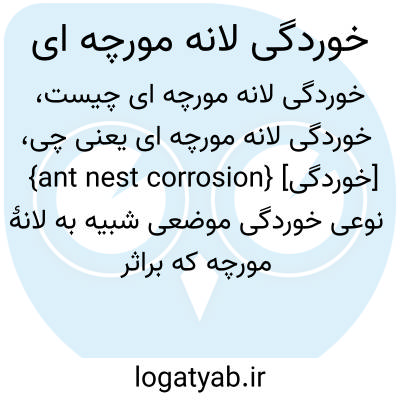 {ant nest corrosion} [خوردگی] نوعی خوردگی موضعی شبیه به لانۀ مورچه که براثر کربوکسیلیکاسیدهای حاصل از آب کافت حلاّل های آلی کلردار و روغن های روان ساز به وجود می آید