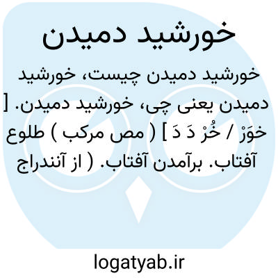 خورشید دمیدن. [ خوَرْ / خُرْ دَ دَ ] ( مص مرکب ) طلوع آفتاب. برآمدن آفتاب. ( از آنندراج ): گفتم ای بخت بخسبیدی و خورشید دمید گفت با اینهمه از سابقه نومید مشو.حافظ ( از آنندراج ).