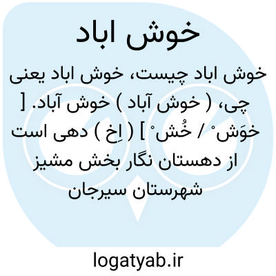 ( خوش آباد ) خوش آباد. [ خوَش ْ / خُش ْ ] ( اِخ ) دهی است از دهستان نگار بخش مشیز شهرستان سیرجان، واقع در 26هزارگزی جنوب خاوری مشیز و 2هزارگزی باختر راه فرعی بافت به نگاربا 102 تن سکنه. ( از فرهنگ جغرافیایی ایران ج 8 ).
