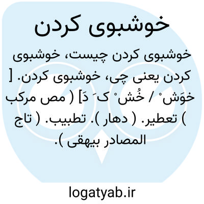 خوشبوی کردن. [ خوَش ْ / خُش ْ ک َ دَ] ( مص مرکب ) تعطیر. ( دهار ). تطبیب. ( تاج المصادر بیهقی ). تعریف. ( ترجمان القرآن ). معطر کردن. خوشبوی ساختن. خوشبوی گردانیدن. ( یادداشت مؤلف ):