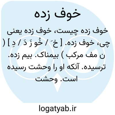 خوف زده. [ خ َ / خُو زَ دَ / دِ ] ( ن مف مرکب ) بیمناک. بیم زده. ترسیده. آنکه او را وحشت رسیده است. وحشت زده.