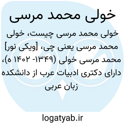 [ویکی نور] محمد مرسی خولی (1349- 1402 ه)، دارای دکتری ادبیات عرب از دانشکده زبان عربی الازهر مصر، نویسنده، پژوهشگر و محقق بود.