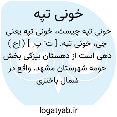 خونی تپه. [ ت َ پ ِ ] ( اِخ ) دهی است از دهستان بیزکی بخش حومه شهرستان مشهد. واقع در شمال باختری مشهد، نزدیک راه شوسه مشهد بقوچان و کشف رود. ( از فرهنگ جغرافیایی ایران ج 9 ).