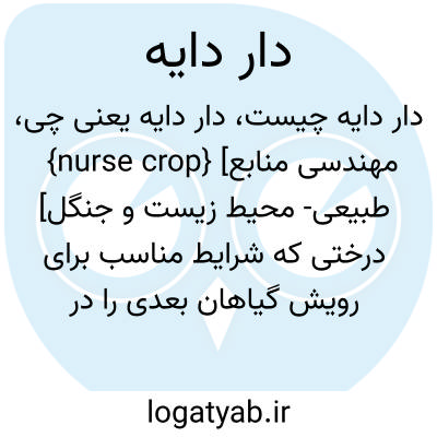 {nurse crop} [مهندسی منابع طبیعی- محیط زیست و جنگل] درختی که شرایط مناسب برای رویش گیاهان بعدی را در عرصۀ جنگل فراهم می سازد و آنها را در برابر آسیب های محیط حمایت می کند متـ. دار پرستار