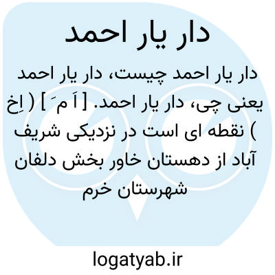 دار یار احمد. [ اَ م َ ] ( اِخ ) نقطه ای است در نزدیکی شریف آباد از دهستان خاور بخش دلفان شهرستان خرم آباد، که آب دهکده شریف آباد از سراب آن ( سراب داریاراحمد ) تأمین میشود. رجوع به فرهنگ جغرافیایی ایران ج 6 ذیل کلمه شریف آباد شود.
