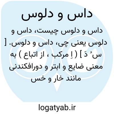 داس و دلوس. [ س ُ دَ ] ( اِ مرکب، از اتباع ) به معنی ضایع و ابتر و دورافکندنی مانند خار و خس، خاش و خماش و امثال آن. ( برهان ). آشغال. تباه و تبست. خاش و خماش. صاحب انجمن آرا و بتبع او آنندراج آرد: از اتباع است مانند تار و مار... و بعضی گفته اند هرچه از پس چیزی بود داس گویند. || ( ص مرکب ) سفله و دون. ( برهان ). پست و فرومایه: