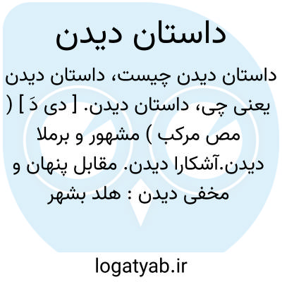 داستان دیدن. [ دی دَ ] ( مص مرکب ) مشهور و برملا دیدن.آشکارا دیدن. مقابل پنهان و مخفی دیدن: