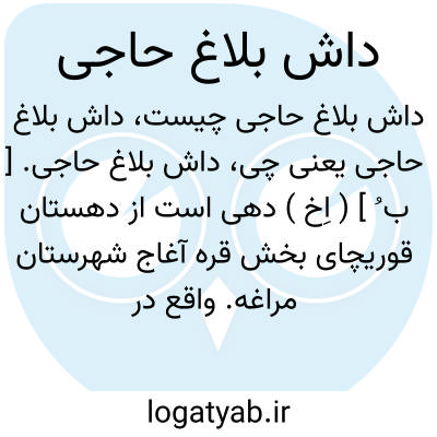 داش بلاغ حاجی. [ ب ُ ] ( اِخ ) دهی است از دهستان قوریچای بخش قره آغاج شهرستان مراغه. واقع در 22هزارگزی شمال باختری قره آغاج و 11هزارگزی جنوب شوسه مراغه به میانه. کوهستانی معتدل و دارای 295تن سکنه است. آب آن از چشمه. محصول آن غلات و نخود وبزرک، شغل اهالی زراعت و صنایع دستی آنان جاجیم بافی و راه مالرو است. ( از فرهنگ جغرافیایی ایران ج 4 ).