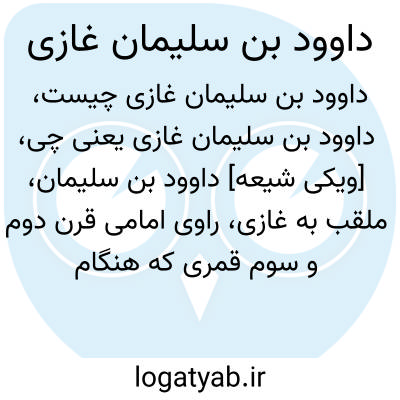 [ویکی شیعه] داوود بن سلیمان، ملقب به غازی، راوی امامی قرن دوم و سوم قمری که هنگام عبور امام رضا (ع) از قزوین به حضور آن حضرت رسیده و از آن حضرت روایت کرده است.
