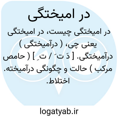 ( درآمیختگی ) درآمیختگی. [ دَ ت َ / ت ِ ] ( حامص مرکب ) حالت و چگونگی درآمیخته. اختلاط. امتزاج. آمیزش. خلط.مزج. || تشویش. آشفتگی. ( ناظم الاطباء ).