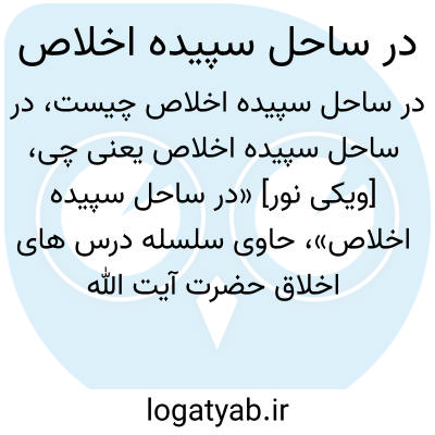 [ویکی نور] «در ساحل سپیده اخلاص»، حاوی سلسله درس های اخلاق حضرت آیت الله حسین مظاهری در دانشگاه علوم اسلامی رضوی، به زبان فارسی است.