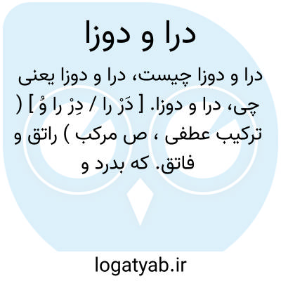 درا و دوزا. [ دَرْ را / دِرْ را وُ ] ( ترکیب عطفی، ص مرکب ) راتق و فاتق. که بدرد و بدوزد. بدر و بدوز. درنده و دوزنده. کسی که در جنگ و آشتی دستی داشته باشد. درادوزا. رجوع به درادوزا شود.