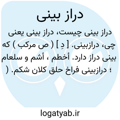 درازبینی. [ دِ ] ( ص مرکب ) که بینی دراز دارد. أخطم، أشم و سلعام؛ درازبینی فراخ حلق کلان شکم. ( منتهی الارب ).