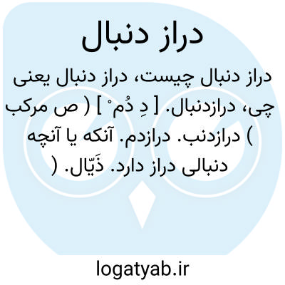 درازدنبال. [ دِ دُم ْ ] ( ص مرکب ) درازدنب. درازدم. آنکه یا آنچه دنبالی دراز دارد. ذَیّال. ( یادداشت مرحوم دهخدا ): ذَنوب؛ اسب درازدنبال. ( السامی فی الاسامی ). || ( اِ مرکب ) گاو. ( برهان ) ( آنندراج ). || گاومیش. ( برهان ) ( آنندراج ): بعضی سوار بودند و قومی بر درازدنبال استوار. ( جهانگشای جوینی ).