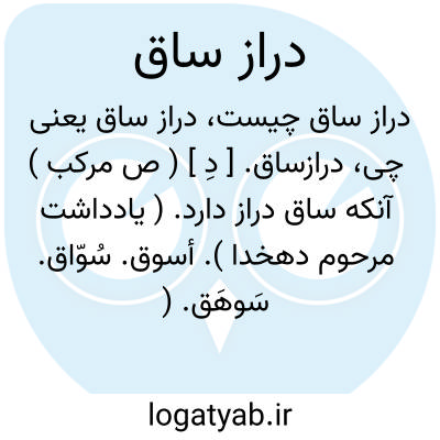 درازساق. [ دِ ] ( ص مرکب ) آنکه ساق دراز دارد. ( یادداشت مرحوم دهخدا ). أسوق. سُوّاق. سَوهَق. ( منتهی الارب ).