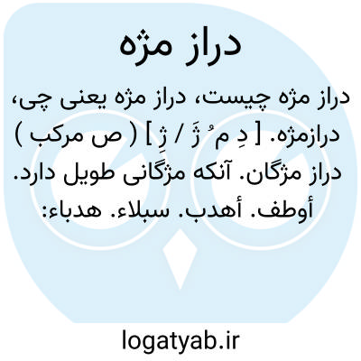 لغت نامه دهخدا درازمژه. [ دِ م ُ ژَ / ژِ ] ( ص مرکب ) دراز مژگان. آنکه مژگانی طویل دارد. أوطف. أهدب. سبلاء. هدباء: عین سَبلاء؛ چشم درازمژگان. ( از منتهی الارب ).
