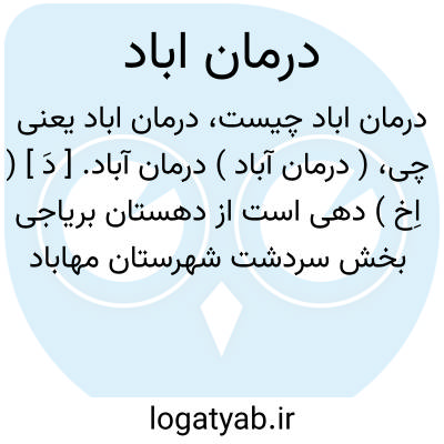 ( درمان آباد ) درمان آباد. [ دَ ] ( اِخ ) دهی است از دهستان بریاجی بخش سردشت شهرستان مهاباد واقع در 8 هزارگزی جنوب باختری سردشت و 6 هزار و پانصد گزی راه شوسه سردشت به مهاباد، با 255 تن سکنه. آب آن از رودخانه سردشت و راه آن مالرو است. ( از فرهنگ جغرافیایی ایران ج 4 ).