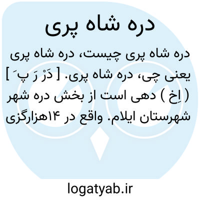 دره شاه پری. [ دَرْ رَ پ َ ] ( اِخ ) دهی است از بخش دره شهر شهرستان ایلام. واقع در 14هزارگزی شمال باختری دره شهر و کنار راه مالرو ایلام، با 338 تن سکنه. آب آن از رودخانه صیمره است. در جنوب این ده بالای کوه آثار قلعه ٔقدیمی وجود دارد. ( از فرهنگ جغرافیایی ایران ج 5 ).